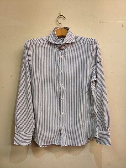 シャツの顔である襟は、ホリゾンタルカラーを元にこだわり抜かれたパターン。