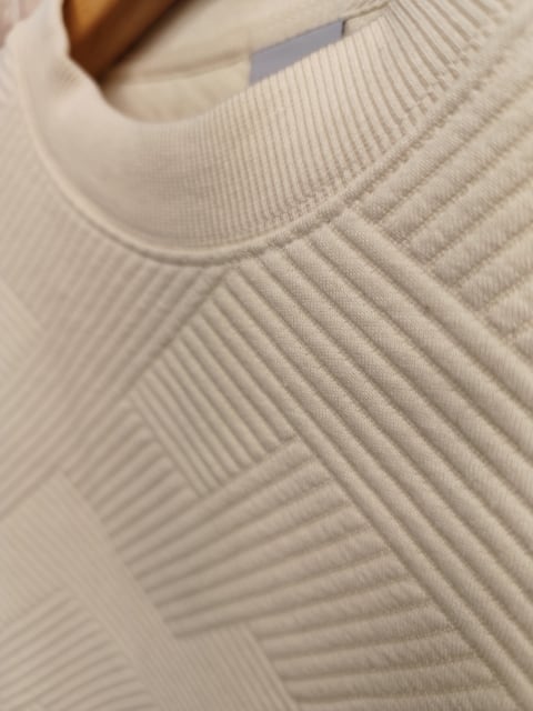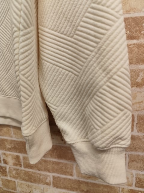 独特の立体感が特徴的なフクレJQ素材を使用した スウェット。