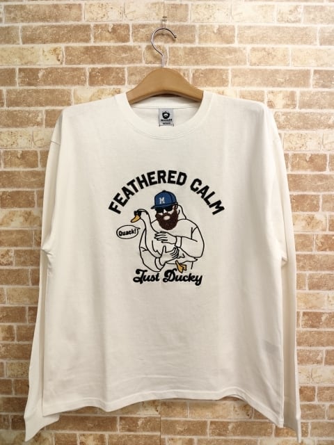 アヒル×ヒゲサガラ刺繍ロンTee(WH)
