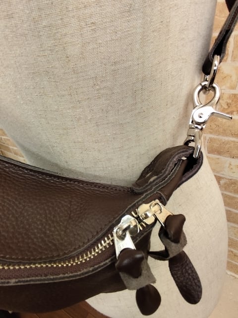 クローム鞣しの本革を使用した2WAYで使えるショルダー。ナスカンをバッグの本体につけているので、ショルダーを外せばパンツのベルトループにつける事ができヒップバッグとして活用できます。ダブルファスナーなので、間口が大きく物の出し入れがしやすい形。 ALL本革で、¥11,500(税抜)も魅力。クローム鞣しの革ですので、雨に強い代わりに、経年変化はあまりしません。