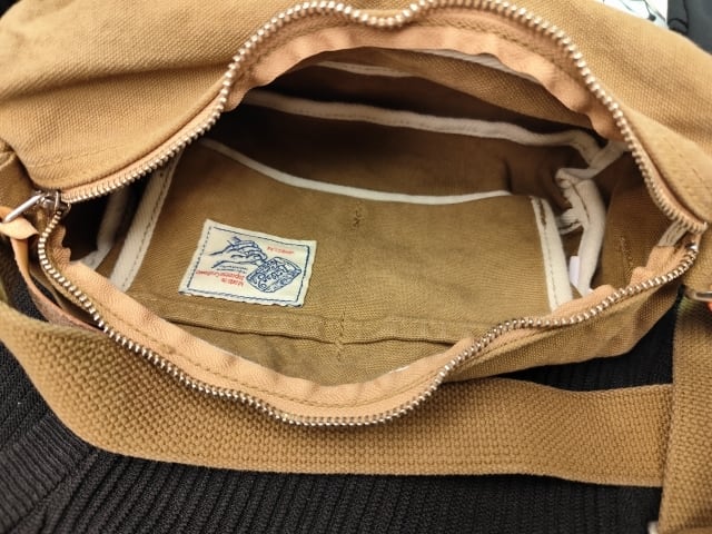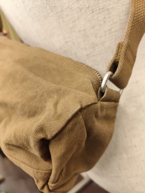 本体のロール部分は、上部と下部でキャンバスの厚さ(8号と6号)を組み合わせているため、染める事によって、上下に多少の濃淡がうまれています。