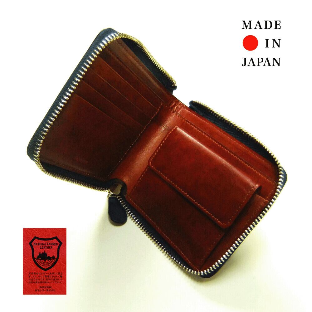 人気の栃木レザーを使用した二つ折りランドジップウォレット。内側にも姫路産の良質な牛革を使用。