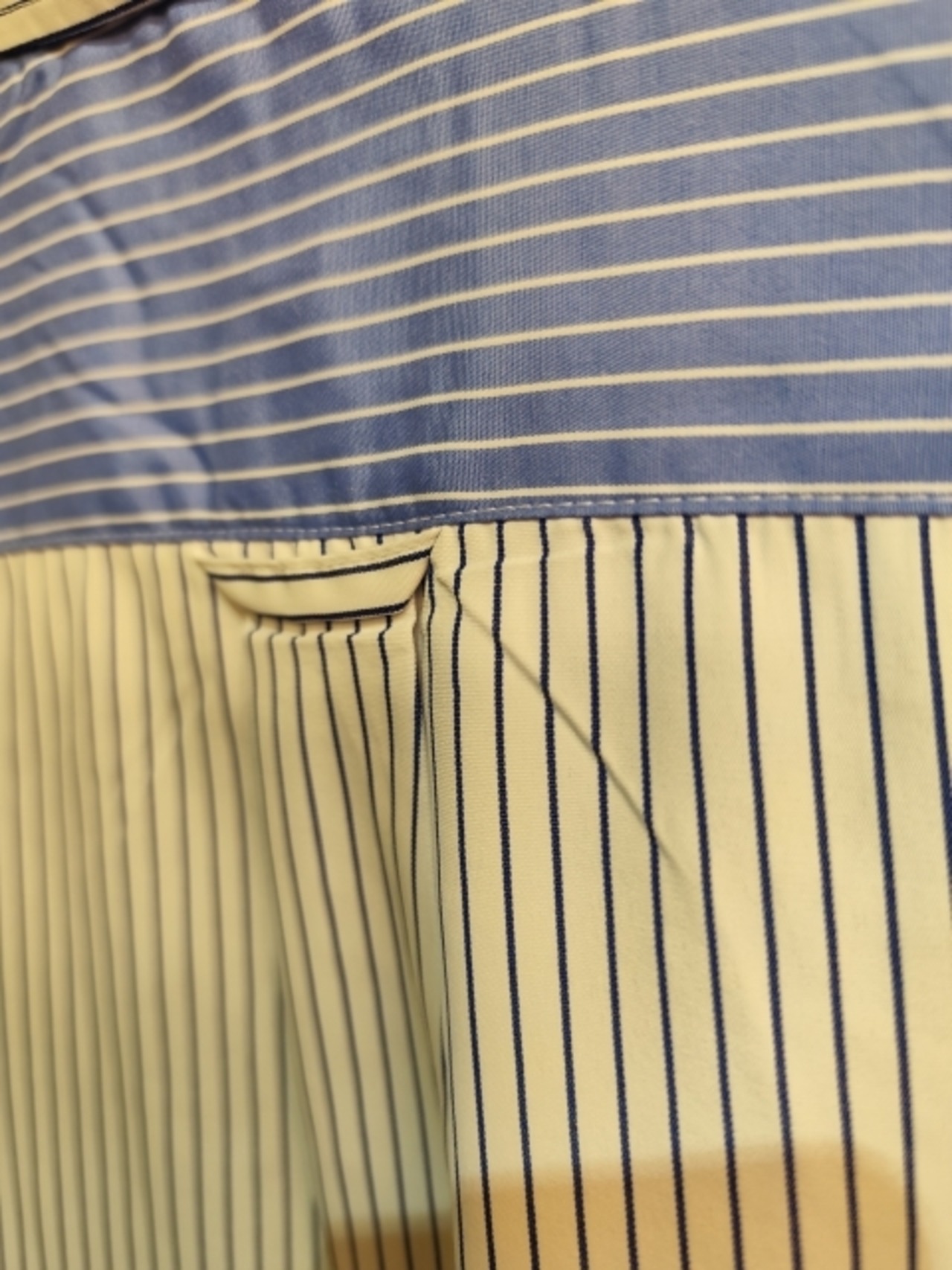 ポリエステルのブロードを使用した上品な質感のストライプシャツ。
