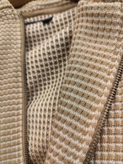編み目の大きさが特徴で、表面の凸凹により肌への接触面が軽減され肌触りの良さも抜群の上品さのある素材。